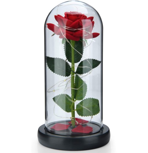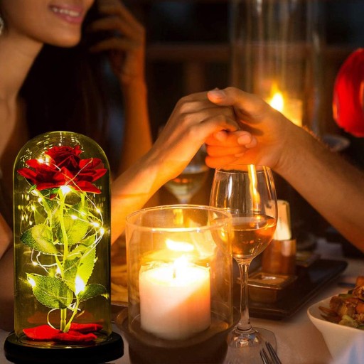 WIECZNA RÓŻA W SZKLE Lampka Nocna Sztuczne Kwiaty PREZENT DLA MAMY KOBIETY