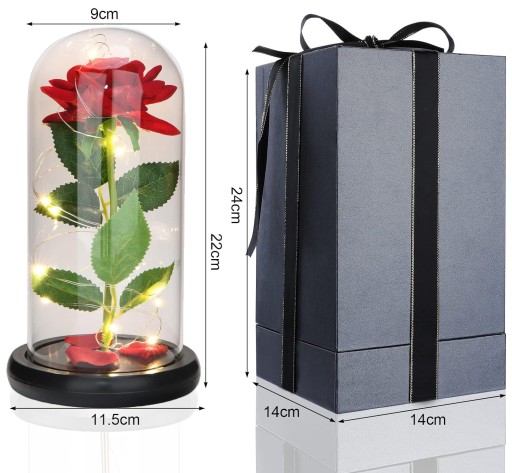 ✔️Wymiary wiecznej róży: 11,5cm x 9cm x 22cm