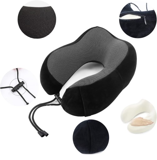 Poduszka ma kształt rogalika, który idealnie dopasowuje się do szyi i głowy, zapewniając wsparcie i komfort podczas podróży.
