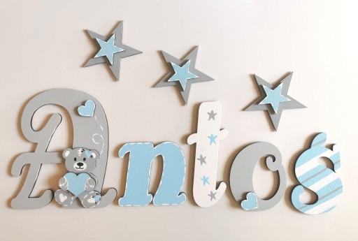 Przedmiotem sprzedaży są niepowtarzalne literki z których możesz stworzyć napis z imieniem dziecka.