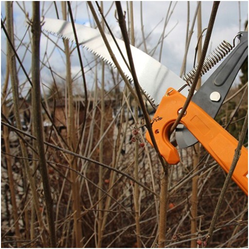 - Ostrze wykonane ze stali hartowanej SK5 zapewnia precyzyjne i czyste cięcie, skuteczne nawet przy grubych gałęziach o maksymalnej średnicy do około 2,5 cm.