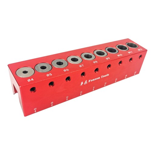 [Właściwy rozmiar] Przyrząd do kołkowania do obróbki drewna ma wymiary 14,8 cm x 4,5 cm x 3,5 cm / 5,83 cala x 1,77 cala x 1,38 cala, rozstaw otworów 1,6 cm / 0,63 cala.