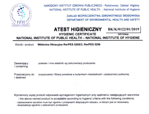 Parametry techniczne maty filtracyjnej G4(EU4) wg normy Polskiej-Europejskiej PN-EN 779