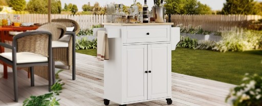 Wyspa kuchenna na wózkach, drewniany wózek kuchenny z blatem, wózek do serwowania potraw do kuchni, jadalni, przedpokoju.