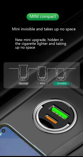 • Kompaktowy i ukryty: Mały rozmiar tej ładowarki samochodowej ułatwia ukrycie jej w samochodzie i utrzymanie porządku.