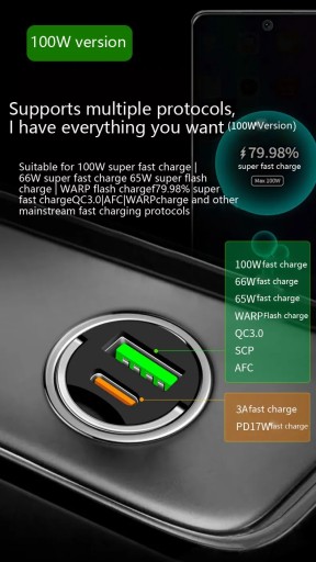 • Szybkie ładowanie: Dzięki ładowaniu flash o mocy 66 W ta ładowarka samochodowa może szybko naładować urządzenie w podróży.