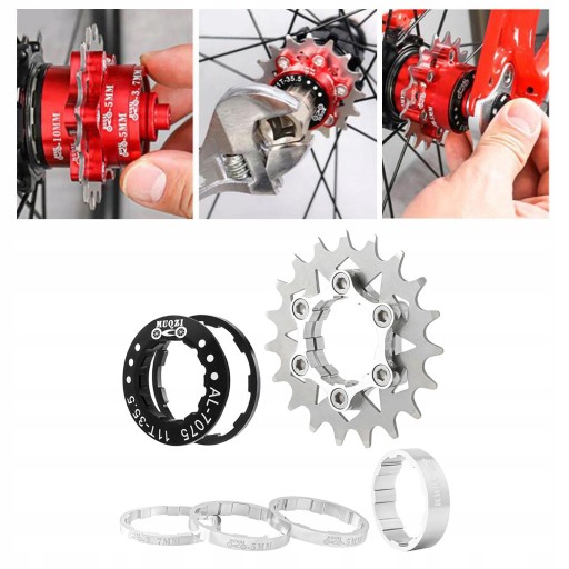 Rower 19T Single Speed Kaseta Dystanse Akcesoria Piasty Wolnobiegu Srebrny
