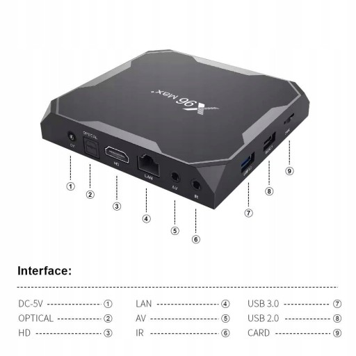 X96 Max S905X3 4G / 64G LAN 1000Mbit 2.4G i 5G Wifi Bluetooth BT