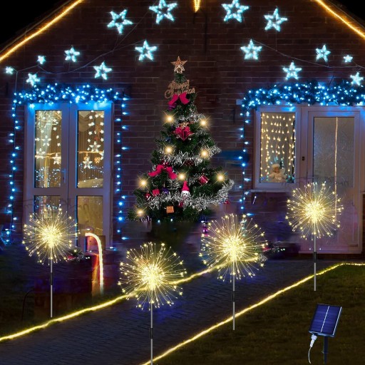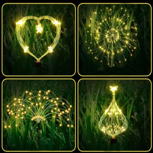 DIY Beautiful Garden Decor - zewnętrzne lampy solarne Maleyt wykorzystują ulepszoną wersję wysokiej jakości drutu miedzianego, który można wygiąć w dowolny kształt. Każda lampa solarna jest wykonana z elastycznego, wysokiej jakości drutu miedzianego. Nasze lampy solarne do fajerwerków można zaprojektować w różnych kształtach, takich jak fajerwerki, serca, latarnie, kwiaty itp. Ulepszony drut miedziany nie jest łatwy do zdmuchnięcia na wietrze, a piękne światła są urocze w nocy, bardzo odpowiednie na podwórko, patio, kwietnik, imprezy.