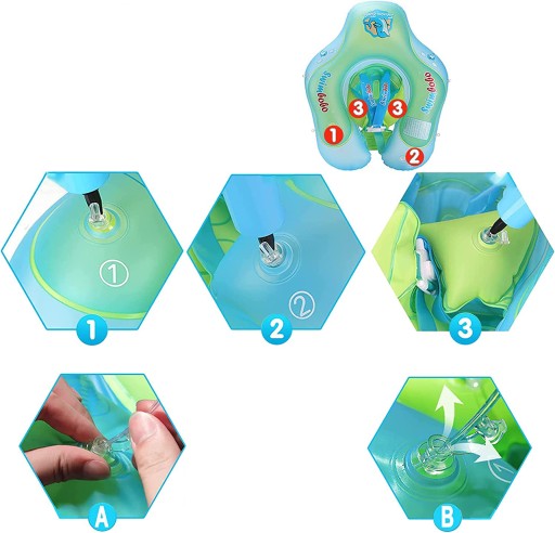 💦【Wygodny i prosty】: nadmuchiwanie, opróżnianie, składanie i przechowywanie. Poduszka powietrzna ma większą stabilność w wodzie. Pierścień łukowy nad poduszką powietrzną zapobiega przewróceniu się karoserii dziecka i zwiększa bezpieczeństwo.