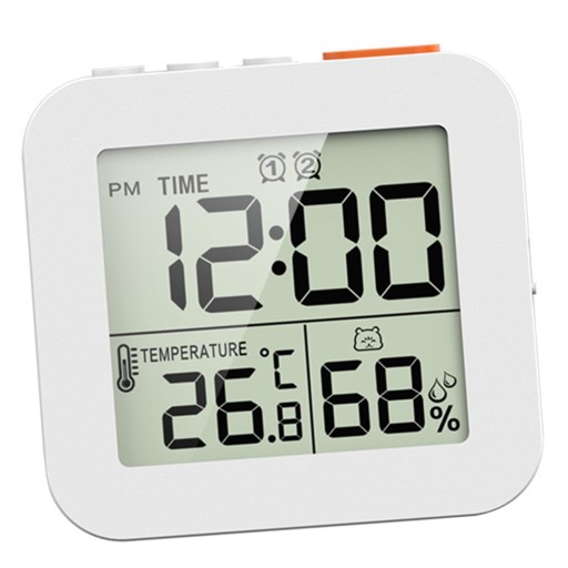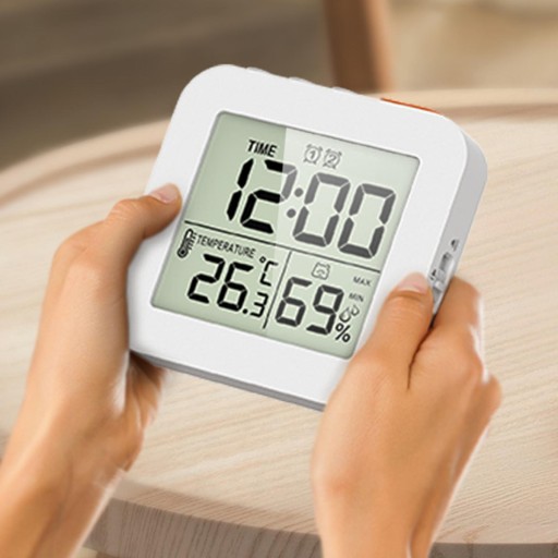 [Wyraźny wyświetlacz]: Cyfrowy zegar LCD pokazuje czas, temperaturę i wilgotność względną w pomieszczeniu, wszystko jest łatwe do odczytania.
