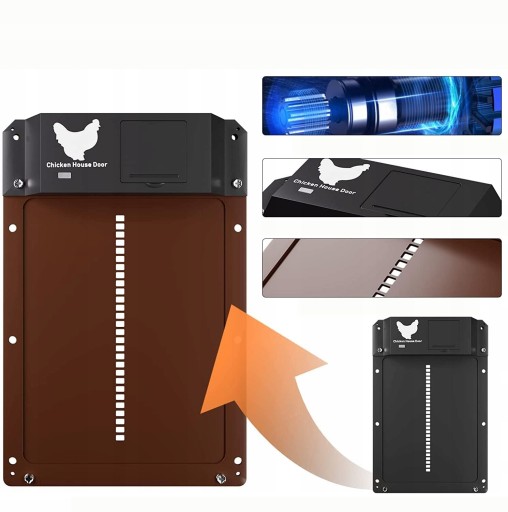 ✔- Drzwi kurnika są zaprogramowane z mechanizmem zabezpieczającym. Gdy drzwi dotkną kurczaków, zatrzymają się automatycznie.