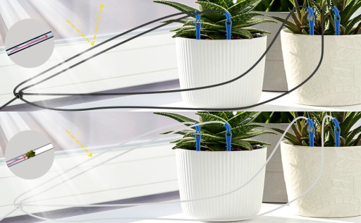 - Zapewnienie najlepszej wydajności tego systemu nawadniania roślin. Podczas długich wakacji zewnętrzne źródło zasilania powinno być podłączone.