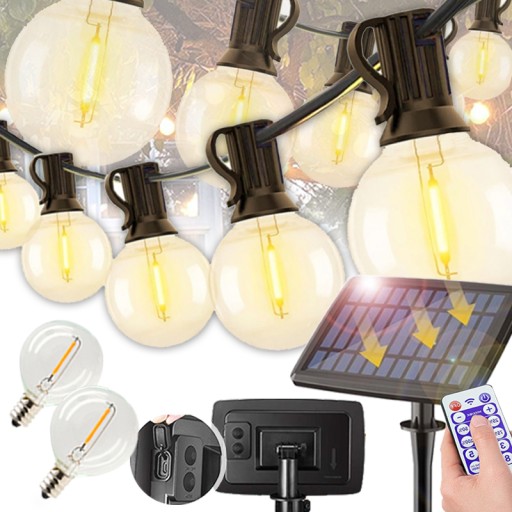 GIRLANDA SOLARNA OGRODOWA ŁAŃCUCH ŚWIETLNY 32 LED DUŻE ŻARÓWEK + PILOTA 10,3M