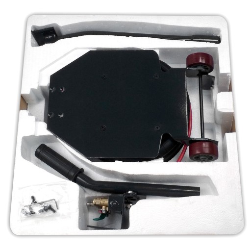 - Kółka Ø60 mm z wytrzymałego tworzywa sztucznego: Wytrzymałe kółka z tworzywa sztucznego ułatwiają przemieszczanie podnośnika pod podwoziem pojazdu.