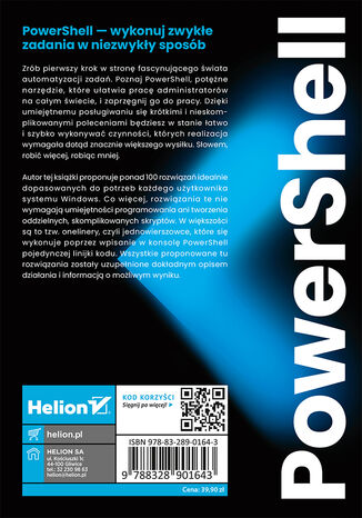 Autor tej książki proponuje ponad 100 rozwiązań idealnie dopasowanych do potrzeb każdego użytkownika systemu Windows. Co więcej, rozwiązania te nie wymagają umiejętności programowania ani tworzenia oddzielnych, skomplikowanych skryptów. W większości są to tzw. onelinery, czyli jednowierszowce, które się wykonuje poprzez wpisanie w konsolę PowerShell pojedynczej linijki kodu. Wszystkie proponowane tu rozwiązania zostały uzupełnione dokładnym opisem działania i informacją o możliwym wyniku.