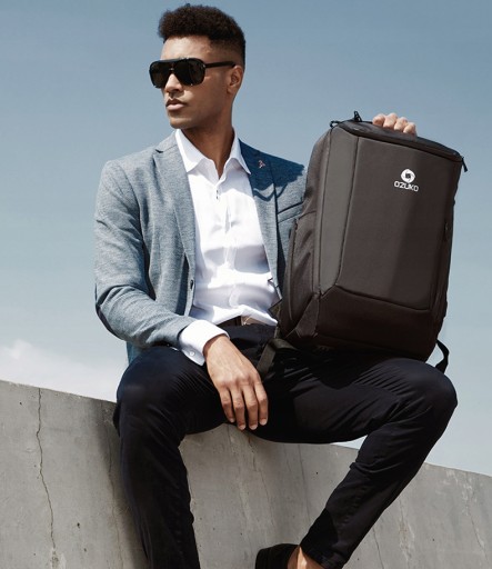 Dwukomorowy plecak na laptopa do rozmiaru 17,3" marki OZUKO o symbolu 9060. Wykonany został z wytrzymałego i impregnowanego materiału PVC, który ochroni zawartość plecaka przed warunkami atmosferycznymi. W pierwszej komorze, z tyłu plecaka, znajduje się miejsce na dokumenty A4, dedykowana kieszeń na laptopa w rozmiarze do 17,3, kieszeń na tablet w rozmiarze do 10 (obie z elastycznymi paskami do przytrzymania urządzeń) oraz mniejsze kieszonki na akcesoria. Komora ta jest rozpinana pod kątem 180st., na płasko, aby ułatwić dostęp do jej zawartości. W drugiej komorze, z przodu plecaka, znajduje się przestrzeń na zapakowanie ubrań i większych rzeczy, i co ciekawe podszewkę tej komory można wyjąć jak worek. Z boku plecaka umieszczono kieszeń na napój lub parasolkę, a z drugiej strony małą, zapinaną na zamek kieszonkę na telefon oraz zewnętrzne złącze USB, dzięki czemu nie ma konieczności wyciągania power banka z plecaka, aby naładować telefon lub inne przenośne urządzenie. U góry plecaka znajduje się solidny uchwyt do wygodnego przenoszenia go w ręce nawet przy dużym obciążeniu. Szelki plecaka są wyprofilowane i solidnie uszyte, oraz spinane dodatkowym paskiem, aby lepiej rozłożyć ciężar przy maksymalnym zapakowaniu plecaka. Tył plecaka i szelki są wyłożone miękkimi gąbkami, dzięki czemu jest on wygodny w noszeniu. Na tylnej ścianie plecaka znajduje się również bezpieczna kieszeń na portfel lub telefon oraz nylonowy pas, dzięki któremu można założyć plecak na rączkę torby lotniczej. Pod spodem plecaka zamontowano gumowe nóżki, aby plecak nie ześlizgiwał się z powierzchni, na której został postawiony. Plecak OZUKO 9060 pomieści w sobie zarówno ubrania na krótki wyjazd, jak i urządzenia elektroniczne, które będą Ci potrzebne w podróży.