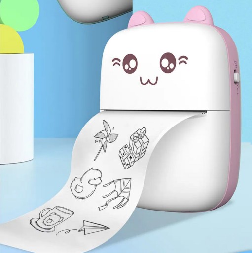 Мини-маленький портативный термопринтер CAT для детей DRUKUŚ 2024 + 1 рулон