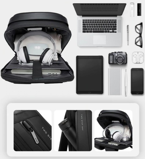 Plecak wyposażony jest w gniazdo usb, dzięki czemu nie ma konieczności wyciągania power banka z plecaka, aby naładować telefon. Uwaga, power bank nie jest częścią zestawu.