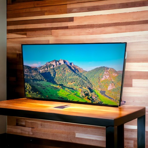 Telewizor ma elegancki i minimalistyczny wygląd , który prawie całkowicie eliminuje ramkę telewizora, aby całą uwagę skupić na obrazie.