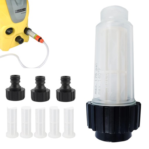 - Filtr wody redukuje i łagodzi brud, zanieczyszczenia lub inne cząstki, które mogą znajdować się w Twoim źródle wody, chroni pompę do mycia ciśnieniowego i przedłuża jej żywotność.