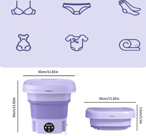 👙Po prostu dodaj detergent i wodę do pralki, włóż ubrania i wybierz żądany tryb. Po praniu można spuścić brudną wodę i wypłukać ubrania czystą wodą. Wyposażona jest także w kosz do suszenia ubrań.