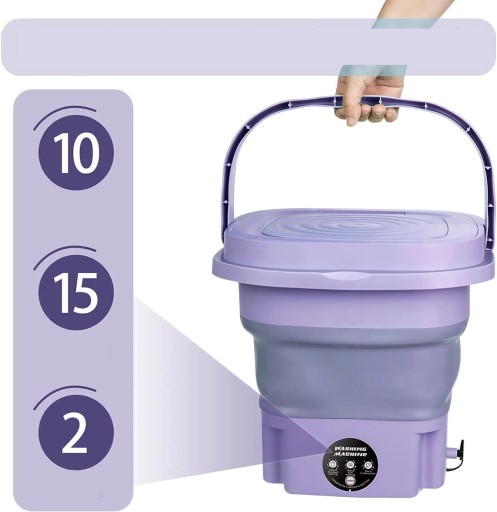 🧤Ta zminiaturyzowana pralka została specjalnie zaprojektowana tak, aby można ją było złożyć do małej walizki i łatwo transportować. Kiedy chcesz zrobić pranie, po prostu rozłóż pralkę i włóż ubrania do środka.