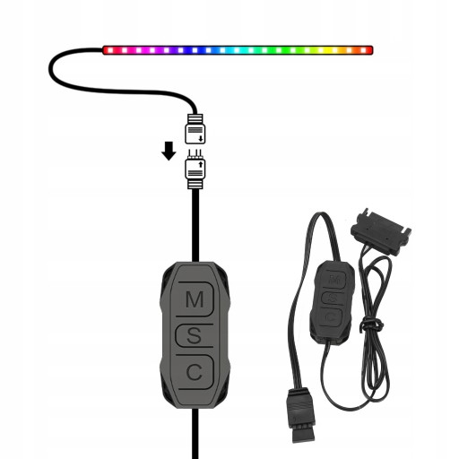 ⏺ STEROWANIE RĘCZNE: Kontroler ARGB może ręcznie sterować efektem świetlnym. Konstrukcja przycisków jest prosta, łatwa w obsłudze, funkcjonalna i praktyczna, a przedłużacz kabla interfejsu został zaprojektowany w celu łatwego podłączenia w celu zaspokojenia potrzeb długości kabla w większości przypadków.