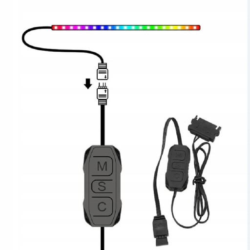 ⏺ PROSTY PRZYCISK: Przycisk M można kliknąć, aby przejść do następującego trybu oświetlenia. Przycisk s można kliknąć, aby przełączyć prędkość zmiany światła. Przycisk c można kliknąć, aby przełączyć na ten sam tryb innego koloru światła lub odwrócić światło.