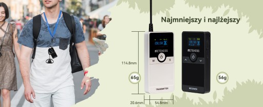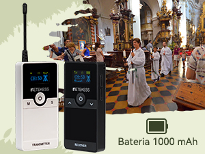 - Nadajnik i odbiornik mają wbudowane akumulatory litowe o pojemności 1000 mAh, które można używać przez ponad