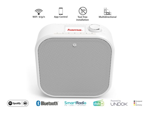 Radio zostało wyposażone w łącze bezprzewodowe, sieciowe LAN IEEE 802.11 b/g/n oraz WiFi 2,4 GHz (b/g/n)/5 GHz (a/n), umożliwiające łączenie się z Internetem w twoim domu. Ponadto możesz połączyć radio Hama ze swoim smartfonem za pomocą Bluetoothc(RX): Klasa 1, A2DP/AVRCP i w ten sposób słuchać muzyki na radio, która odtwarzana będzie na smartfonie. Dodatkowo radio może działać w aplikacji UNDOK, dzięki której możesz sterować swoim urządzeniem wygodnie, nie ruszając się z kanapy.