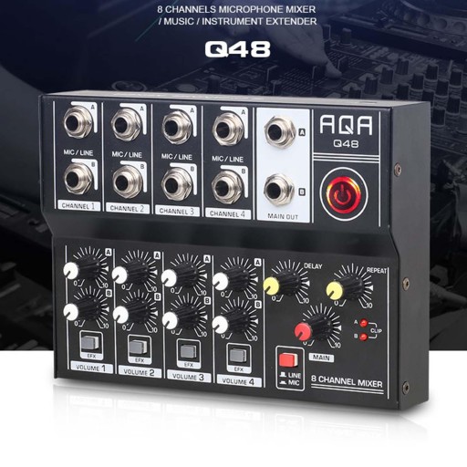 [Mikser 8-kanałowy]: pogłos, wyjście stereo, efekt pogłosu mikrofonu, różne pokrętła można regulować osobno, a efekt dźwiękowy jest lepszy. Precyzyjne strojenie, czysta jakość dźwięku, wszystkie poziomy głośności można regulować indywidualnie.