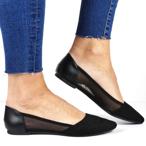 BALERINY PŁASKIE Z SIATECZKĄ WYGODNE NOSEK W SZPIC LEKKIE