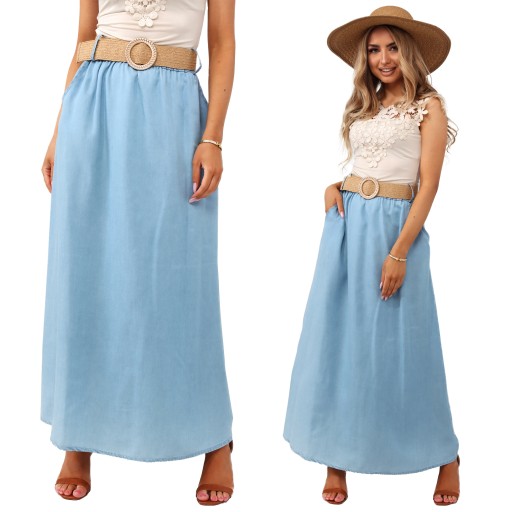 ЮБКА ЖЕНСКАЯ ДЛИННАЯ ЮБКА МАКСИ, ДЖИНСЫ ЖЕНСКИЕ, МОДНЫЙ РЕМЕНЬ, СИНИЙ