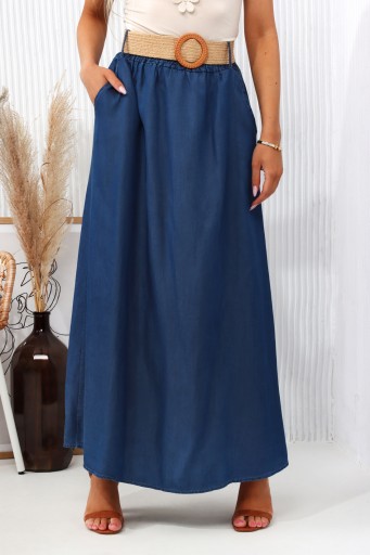 ЮБКА ЖЕНСКАЯ ДЛИННАЯ ЮБКА МАКСИ, ДЖИНСЫ ЖЕНСКИЕ, МОДНЫЙ РЕМЕНЬ, ТЕМНО-СИНИЙ