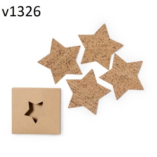 Zestaw 4 podkładek w kształcie gwiazdki, wykonane z korka.