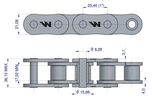 Łańcuch rolkowy, Galla jednorzędowy, napędowy, calowy.
