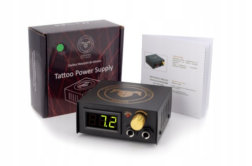 - Zasilacz Jokers Tattoo plus okablowanie ( start/stopka plus kabel do maszynki plus Polski kabel do gniazdka).