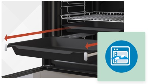 Dzięki prowadnicom teleskopowym można bezpiecznie i łatwo wysunąć tacę z gorącym daniem, unikając przypadkowego poparzenia.