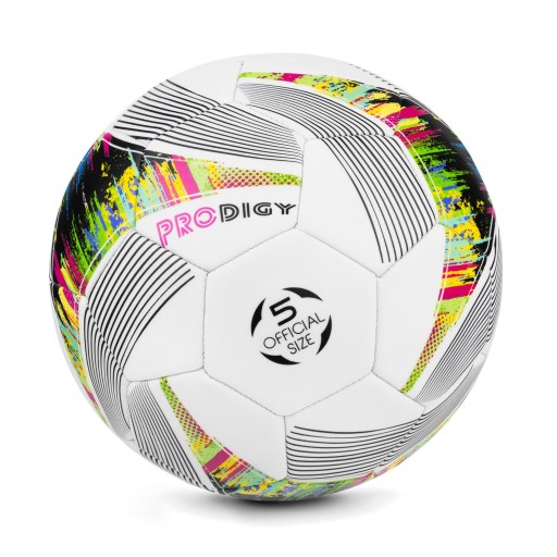 - Model PRODIGY przygotowany został w standardowym rozmiarze wykorzystywanym w piłce nożnej. Obwód optymalnie napompowanej piłki wynosi 690 mm +/- 10 mm, a jej waga: 420 g +/- 10 g.