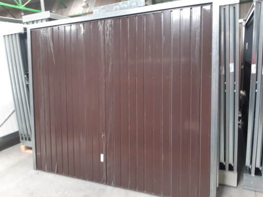 Ościeżnica wykonana z kształtowników ocynkowanych zamkniętych , próg z kształtownika pół zamkniętego. Skrzydło bramy: górny, środkowy oraz dolny stabilne konstrukcyjnie dostosowane do występujących obciążeń . Poszycie: blacha stalowa ocynkowana grubość 0,5 mm, powlekana poliestrem w kolorze z palety RAL : 8017 - Ci. Brąz . Wszystkie metalowe podzespoły konstrukcyjne ocynkowane i skręcane, wmontowany mechanizm zatrzaskowy skrzydła bramy po obu stronach . Skrzydło bramy Ocieplenie styropianem i wykończone od środka siding PCV biały .