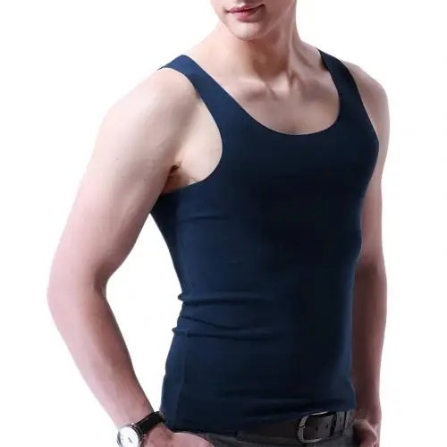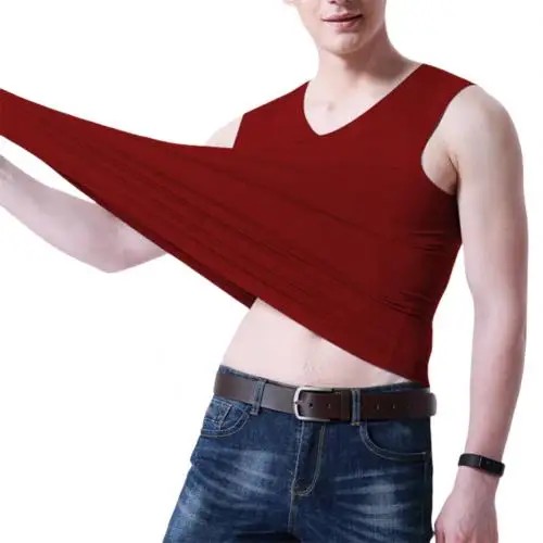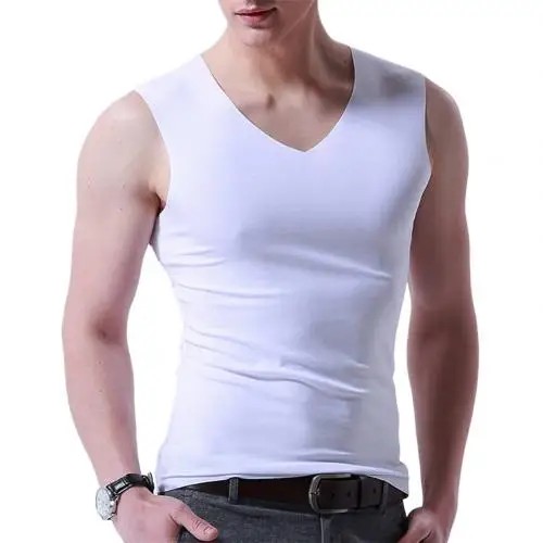 Plus Size Men Sporty Solid Color Sleeveless V Neck Slim Seamless Vest Tank Top