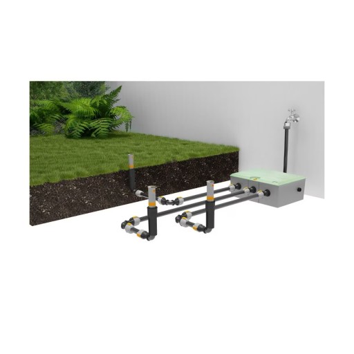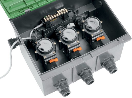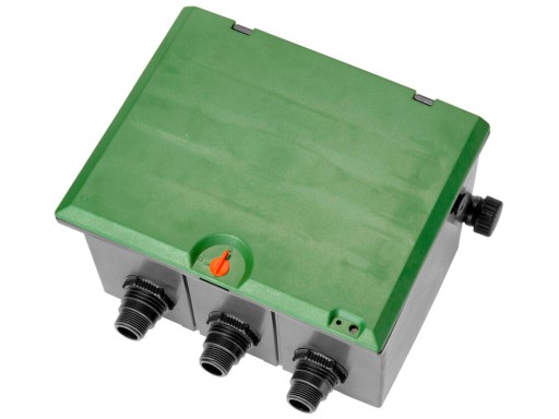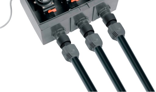 Skrzynka na zawory GARDENA 1255-29 umożliwia zainstalowanie trzech zaworów automatycznych 24 V lub 9 V. Instalacja urządzenia odbywa się za pomocą teleskopowego połączenia, które wystarczy przekręcić, aby w łatwy sposób zamontować lub zdemontować zawór.