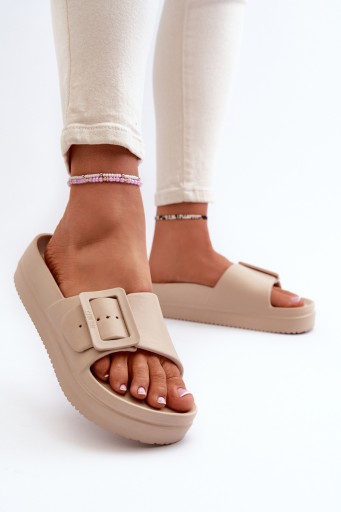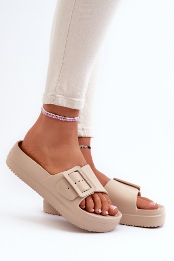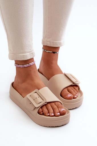 Damskie Piankowe Klapki Na Platformie Z Klamrą Big Star NN274A666 Beżowe - rozmiar 41