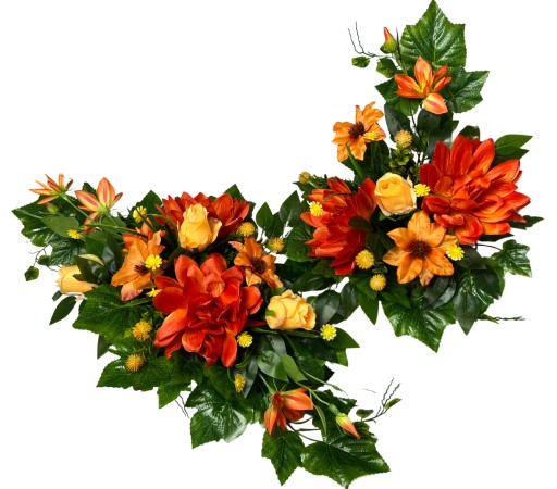 Dekoracja nagrobna wykonana ze sztucznych kwiatów jest elegancką alternatywą dla wiązanek wykonanych ze świeżych kwiatów, gdyż wyróżnia się nie tylko większą trwałością, ale także wyborem kolorystyki czy rozmiarów.