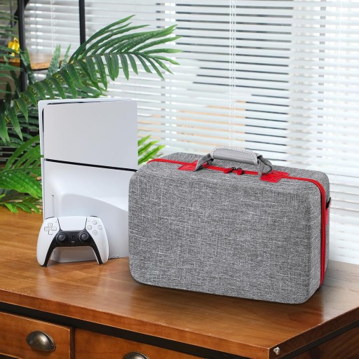 Nowe, dedykowane, wzmocnione etui typu walizka zapinane na podwójny zamek do wszystkich modeli konsoli Sony PlayStation 5 D Chassis / PlayStation 5 Slim wykonane z wysokiej jakości materiału. Pokrowiec jest bardzo wytrzymały i doskonale chroni Twoją konsolę oraz wszystkie akcesoria pady Dualsense, ładowarkę, kable zasilające i sygnałowe, gry, słuchawki i wiele innych) przed zniszczeniami mechanicznymi, wstrząsami, wilgocią i kurzem.