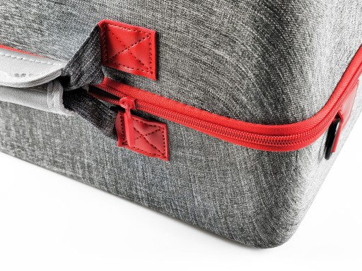 Futerał podróżny posiada specjalny pasek dzięki czemu można go powiesić na ramieniu i przenosić jak torbę. Można także skorzystać z praktycznej, wygodnie wyprofilowanej rączki i przenosić go jak walizkę.