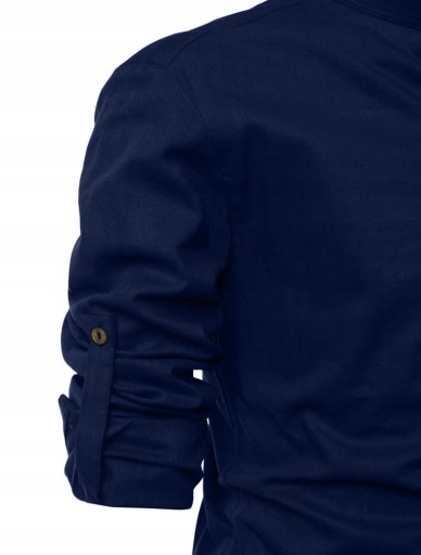 Мужская повседневная льняная рубашка с воротником-стойкой