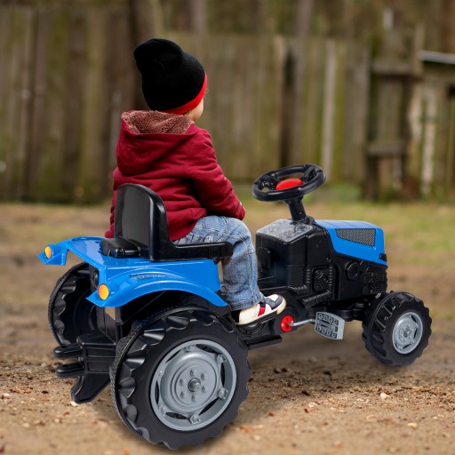 Traktor wyposażony jest w klakson, który sprawi, że maluch nauczy się sygnalizować swoją obecność na drodze oraz ostrzeże potencjalnych pieszych. Klakson ma bardzo przyjemny dźwięk, co dodatkowo umili czas zabawy i sprawi , że mały kierowca poczuje się jak w prawdziwym pojeździe.