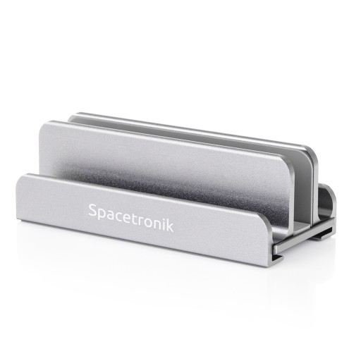 Bez różnicy czy masz grubego laptopa, czy wąskiego Maca, podstawka od Spacetronik posiada regulację szerokości uchwytu od 2 do 4,5 cm. Oprócz tego znajdują się w nim 2 miejsca na telefony komórkowe (każdy model się zmieści)